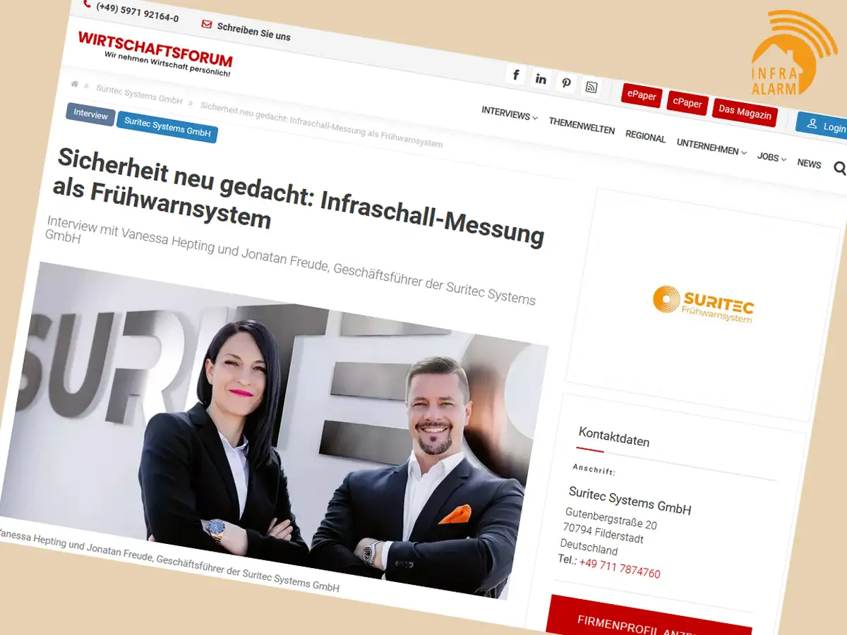 Infra Alarm - Suritec Vanessa Hepting und Jonatan Freude Interview Wirtschaftsforum Sicherheit neu gedacht Infraschall-Messung als Frühwarnsystem