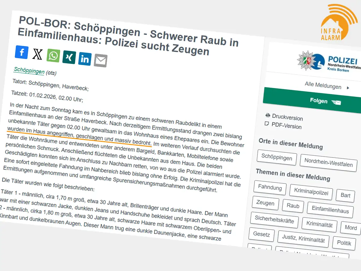 Natürlich gibt es keine absolute Garantie. Aber in einem Fall wie dem aktuellen Überfall in Schöppingen hätte ein aktives Frühwarnsystem sehr wahrscheinlich früher Alarm geschlagen – mit der realistischen Chance, dass Täter abgeschreckt worden wären oder die Bewohner bereits vor der direkten Konfrontation wach gewesen wären.